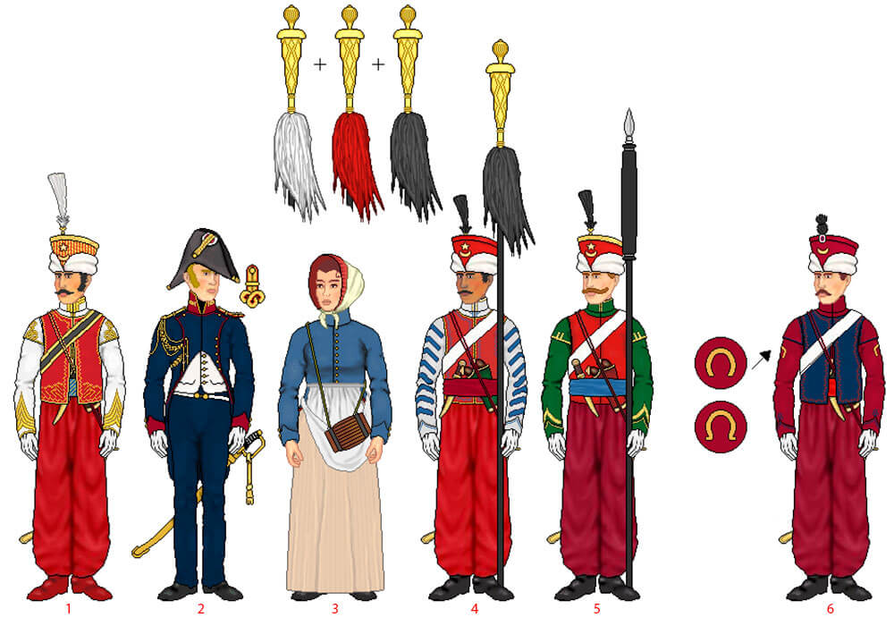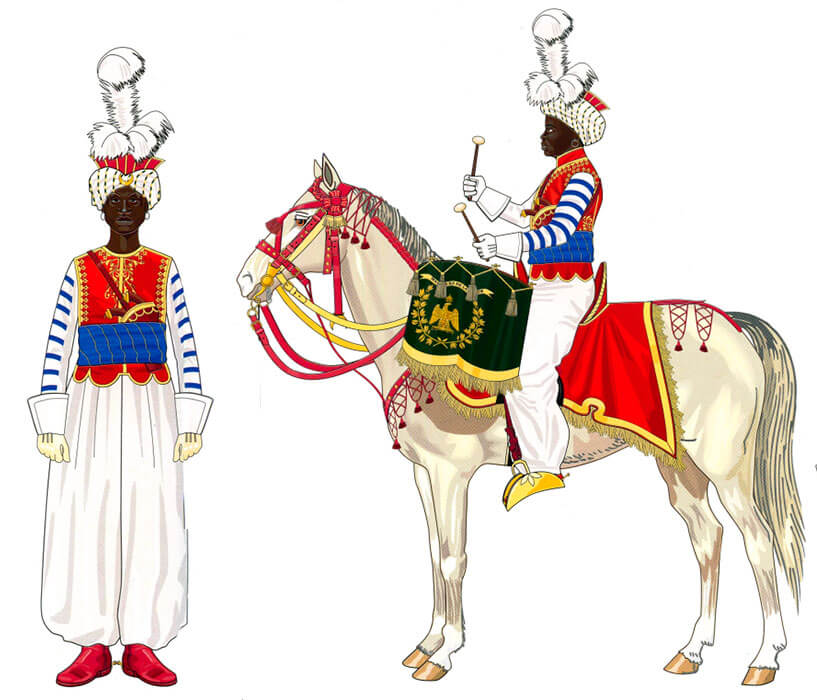 Статья 6 предусматривала, что форма будет мамелюкской, но в знак благодарности за верность французской армии они будут носить зелёный тюрбан. (A.N. AF IV 52/299).