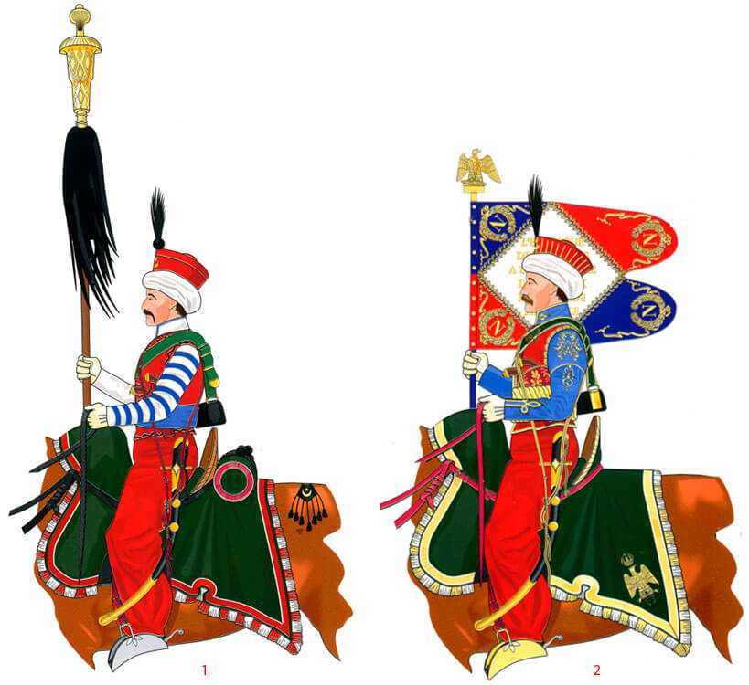 Именно после Аустерлица мамелюки получили орла (указ от 15 апреля 1806 года); младший лейтенант Пьер Мера был назначен знаменосцем.