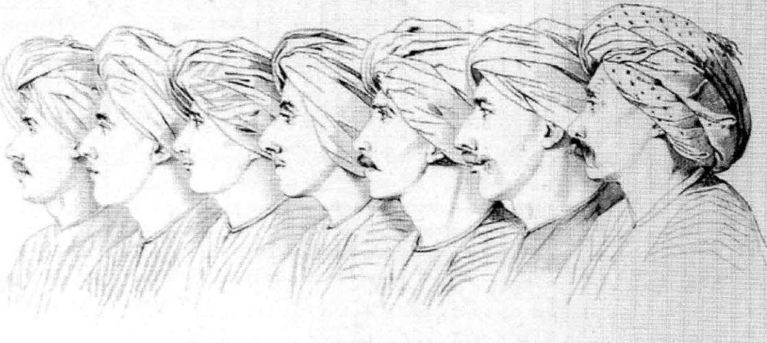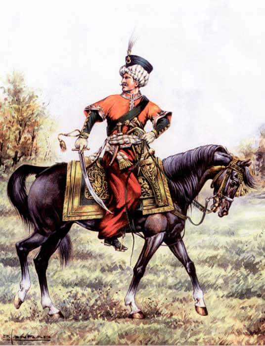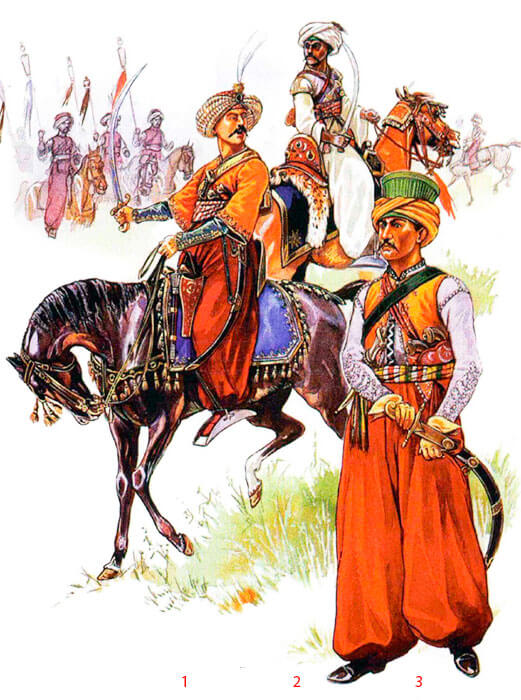 Солдаты-мусульмане носили выбритые волосы с мусульманской кисточкой, солдаты-христиане — короткие волосы, и у всех были большие висячие усы.